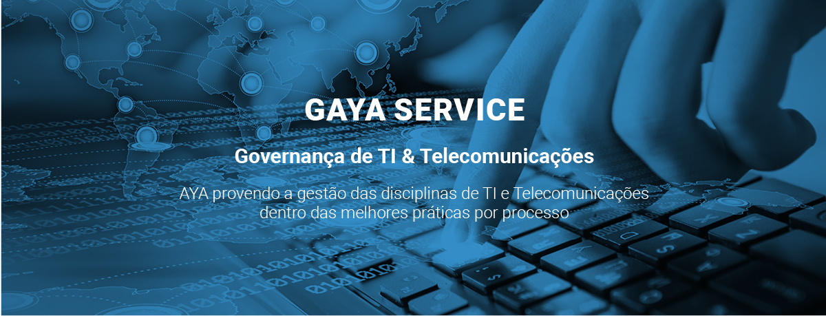 O termo GAYA é a marca criada para representar a “Governança AYA”, produto destinado a fornecer a governança das disciplinas de TI & Telecomunicações dos clientes. Este produto se aplica a todos os outros produtos e serviços oferecidos pela AYA.